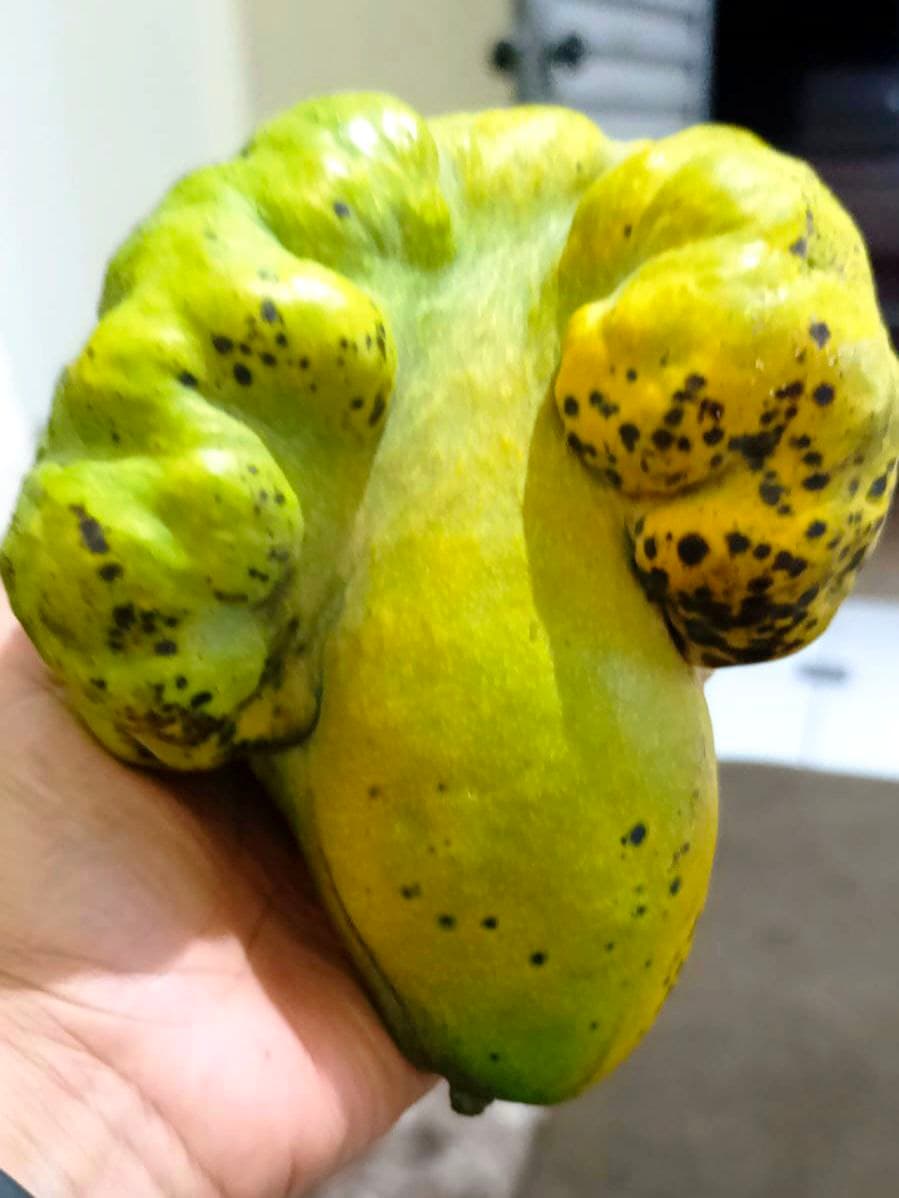 Do ponto de vista técnico, especialistas ouvidos pelo Guaraí Notícias explicam que a deformação é de fato incomum, mas não rara. A causa mais provável é uma polinização irregular, quando apenas parte da flor é fecundada. Com isso, algumas regiões do fruto se desenvolvem normalmente, enquanto outras crescem de forma desordenada, resultando nesses “calombos” que dão à manga um aspecto fora do padrão, parecendo de fato um fruto vindo de outro planeta.