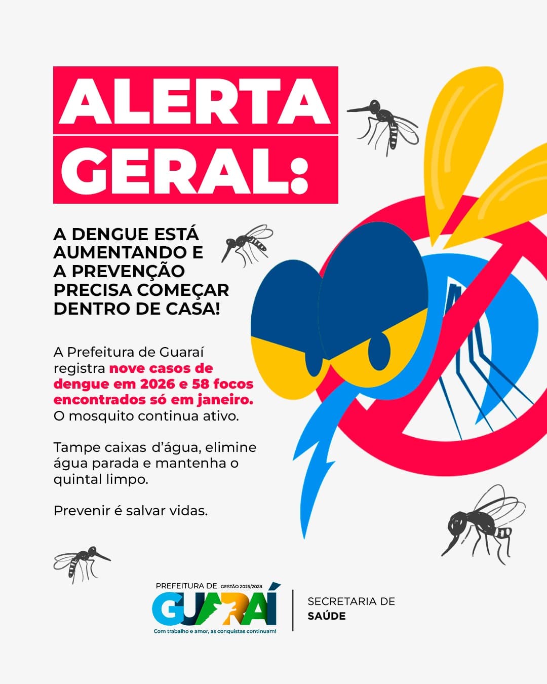 Desde o início deste ano equipes do Centro de Controle de Zoonoses (CCZ) vistoriaram 8.070 imóveis de Guaraí, identificando 58 focos do mosquito Aedes Aegypti. Apesar do índice de infestação ainda ser considerado baixo, a situação exige atenção, levando em conta o aumento dos casos suspeitos e confirmados de Dengue, além de outras doenças como Zika Vírus e Febre Chikungunya.