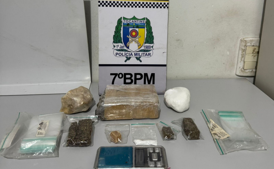 A abordagem que resultou no flagrante teve início com o cumprimento de um mandado de prisão, expedido pela Justiça. Ao chegar no endereço, os militares encontraram 490 gramas de maconha, 107 gramas de crack e 95 gramas de cocaína, além de outros materiais utilizados para pesar e ainda embalar drogas.