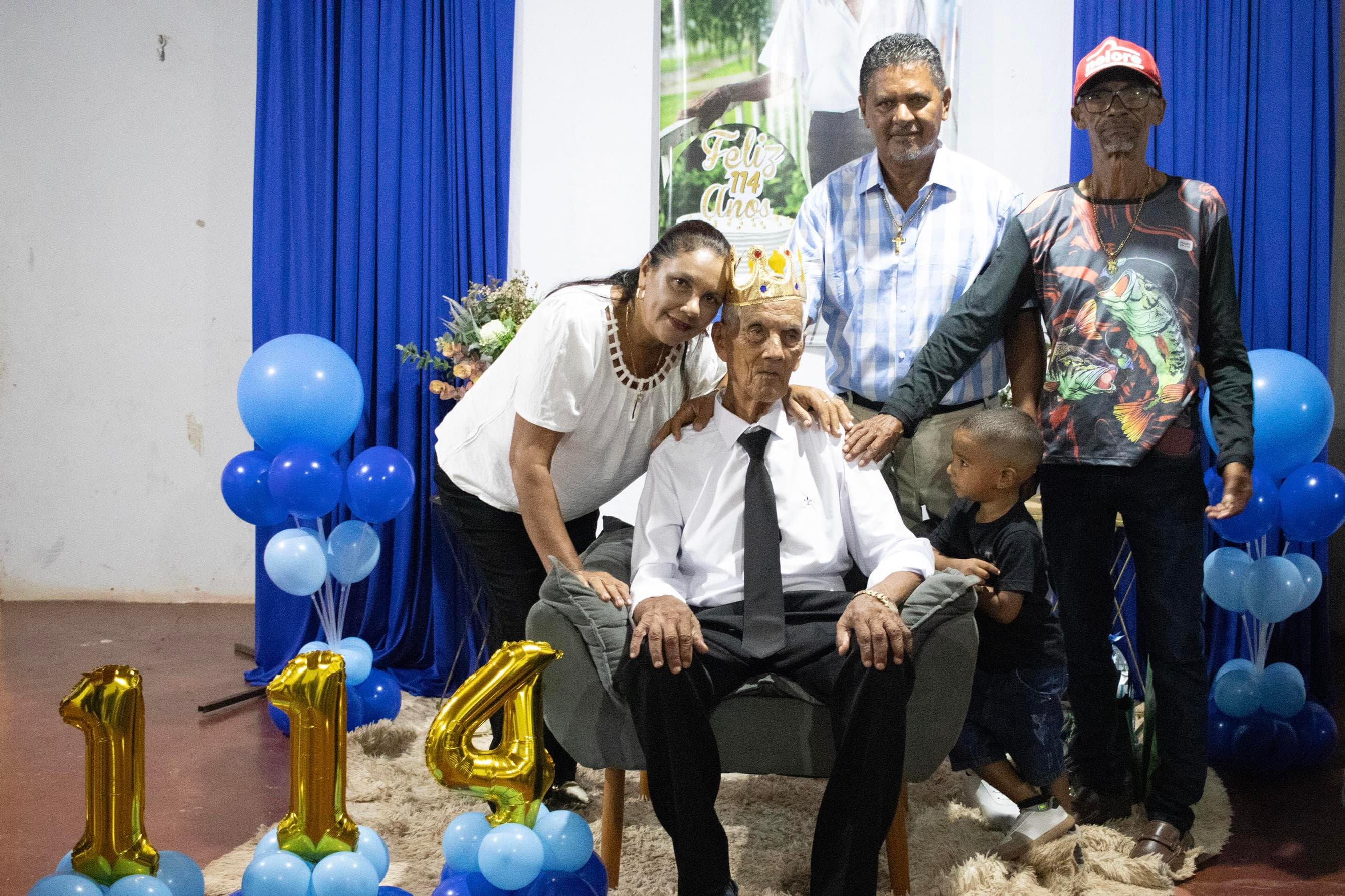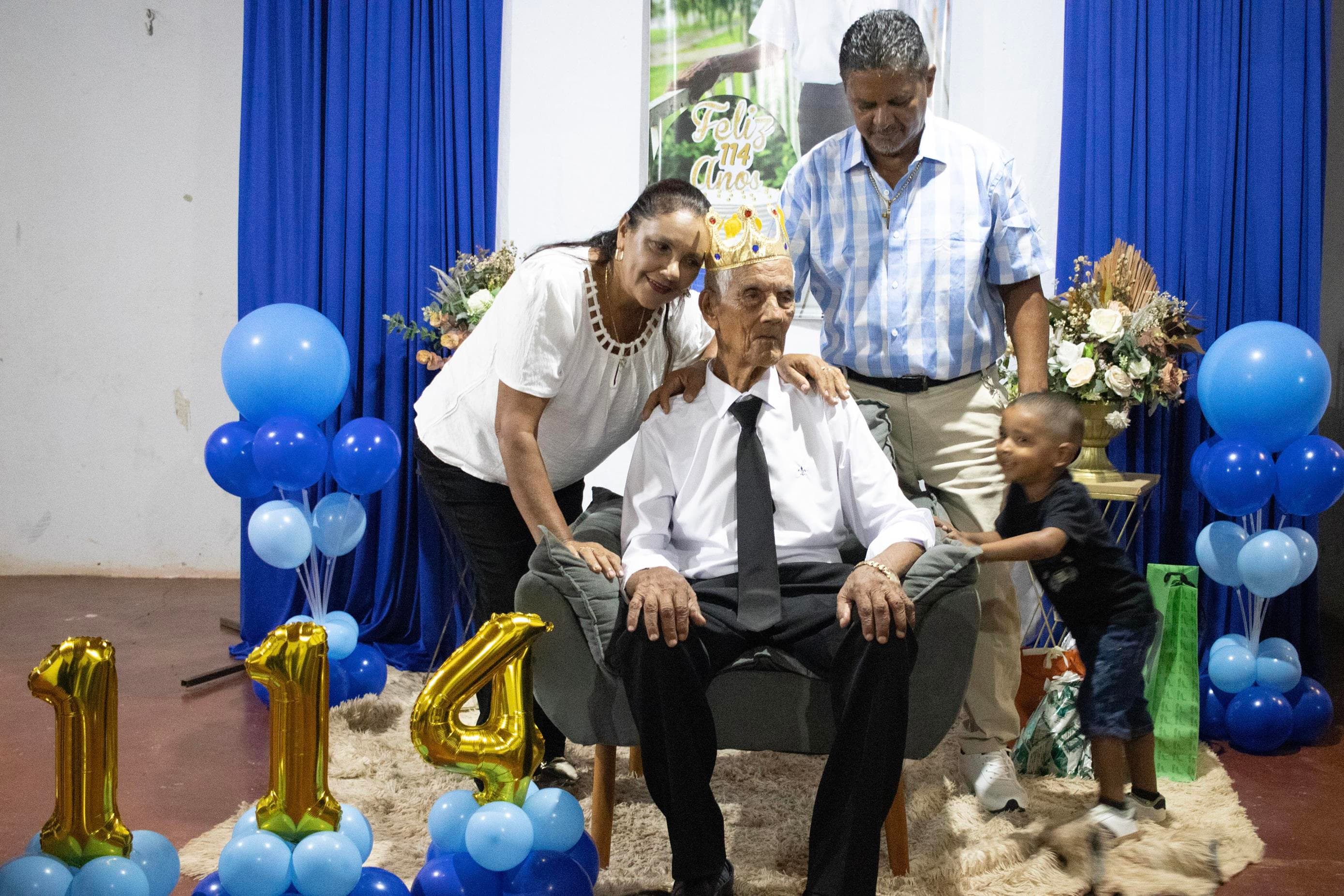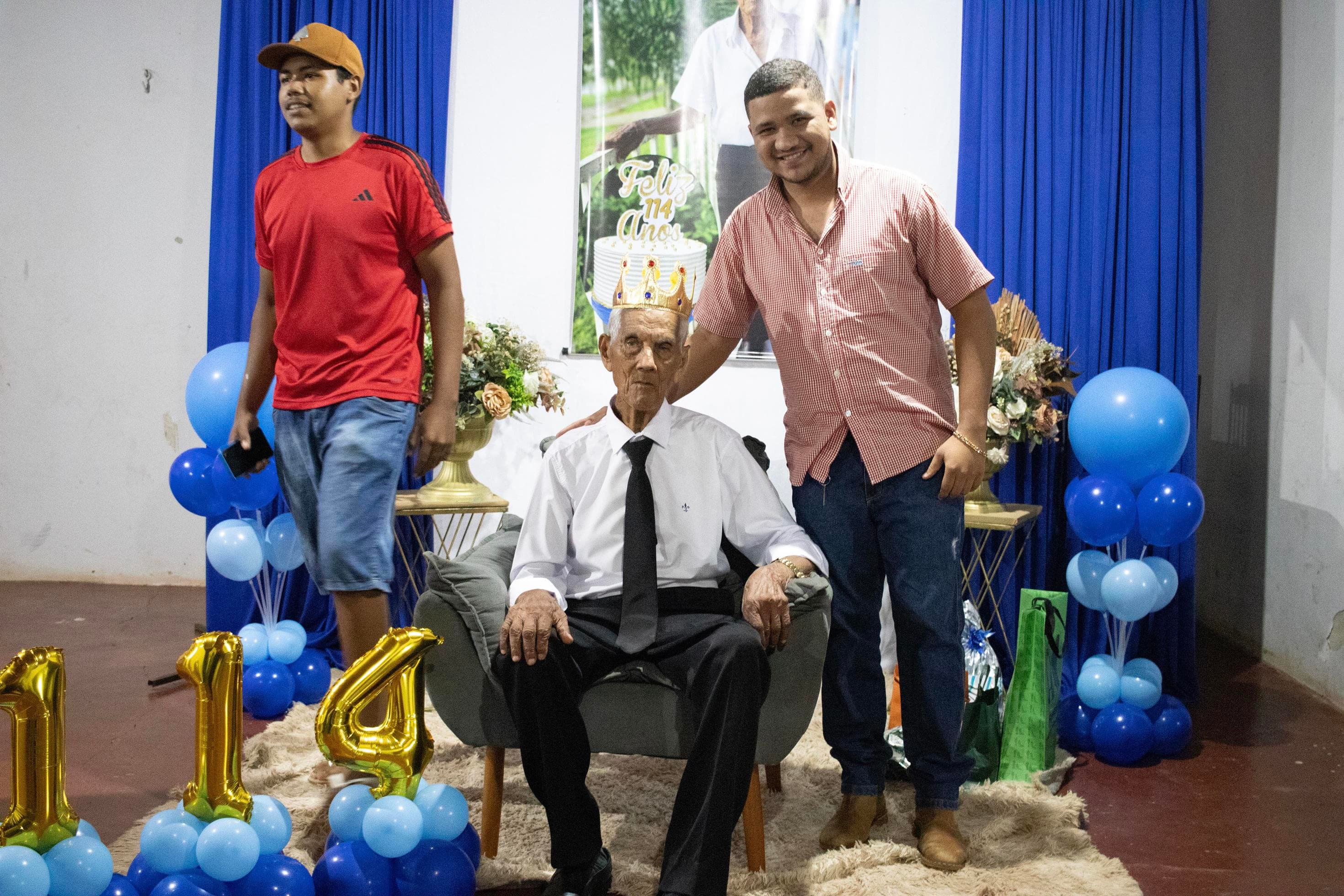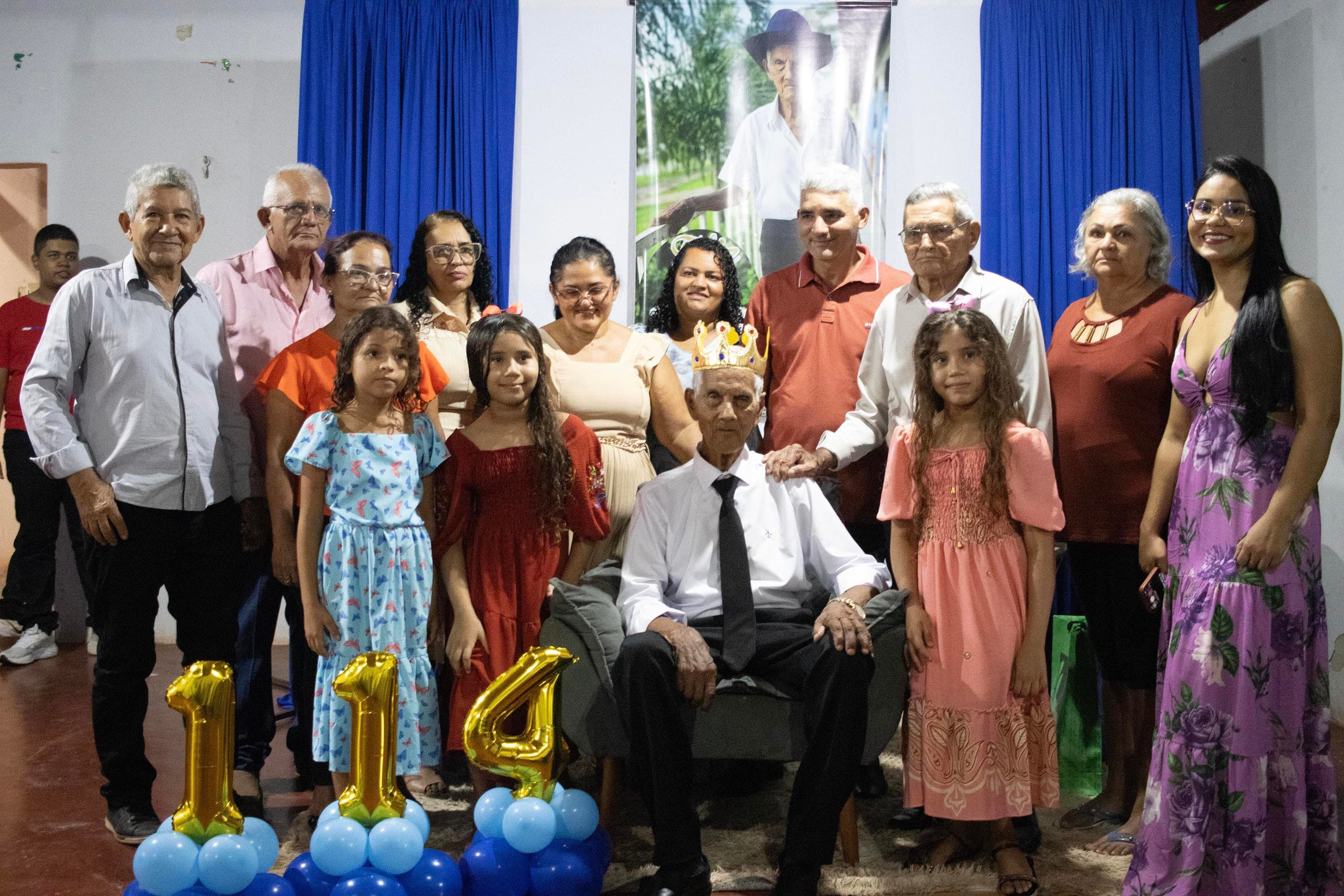 Raimundo Lopes de Sousa, o conhecido “Raimundo Paizinha”, completou 114 anos nesta última sexta-feira, 05 de dezembro, celebrando ao lado de filhos, netos, bisnetos, tataranetos em Guaraí. A festa seguiu seu estilo favorito: muito forró e alegria até altas horas. Mesmo com dificuldade auditiva, mantém memória afiada e conversa sobre qualquer assunto. Sua vitalidade é surpreendente.