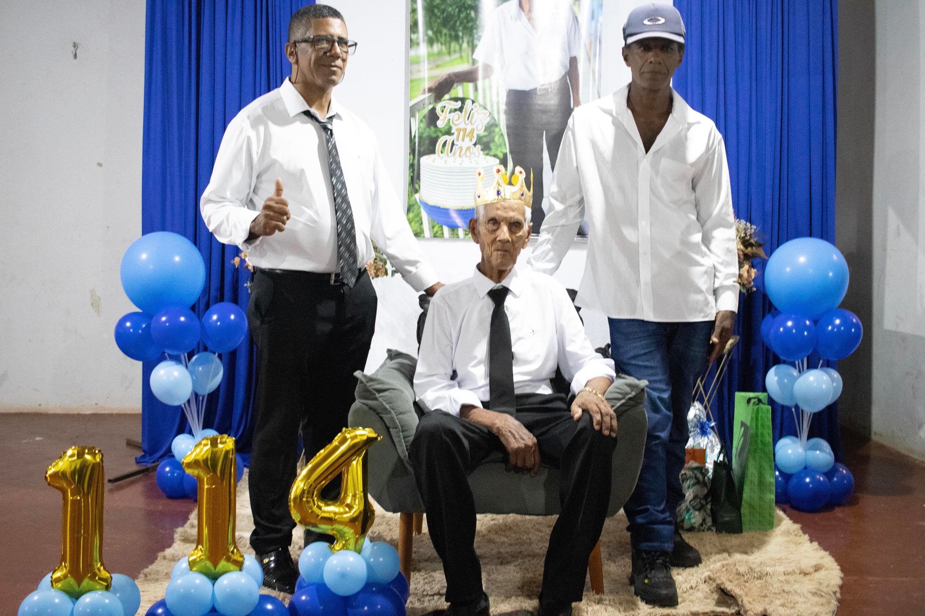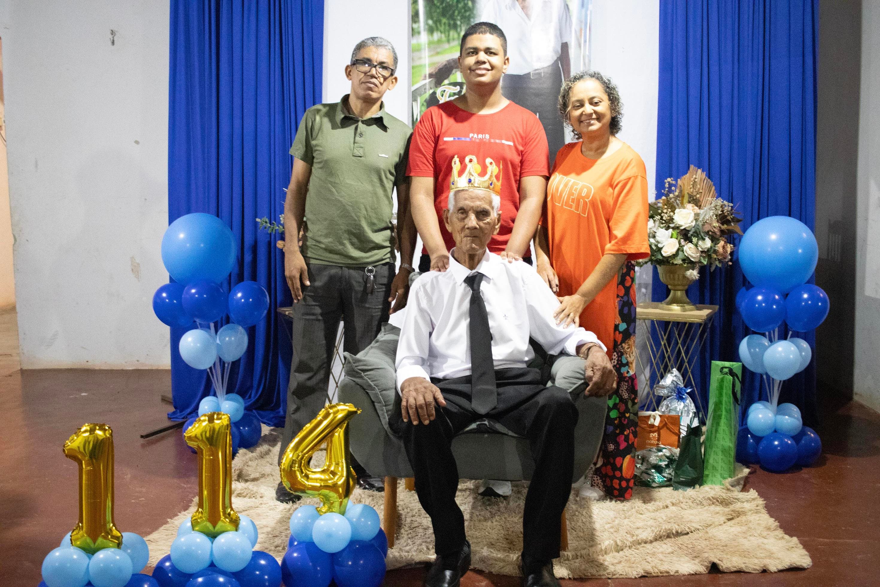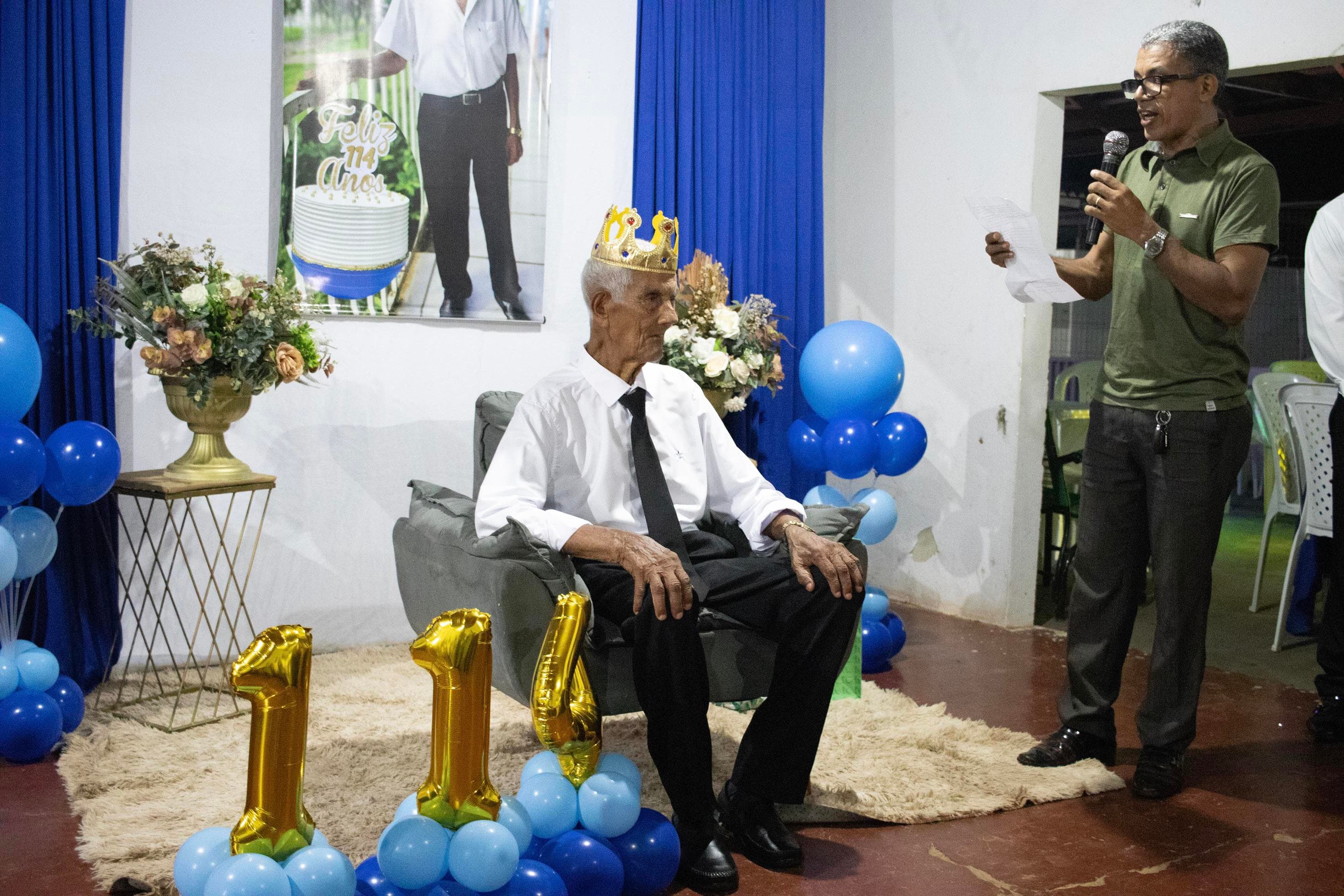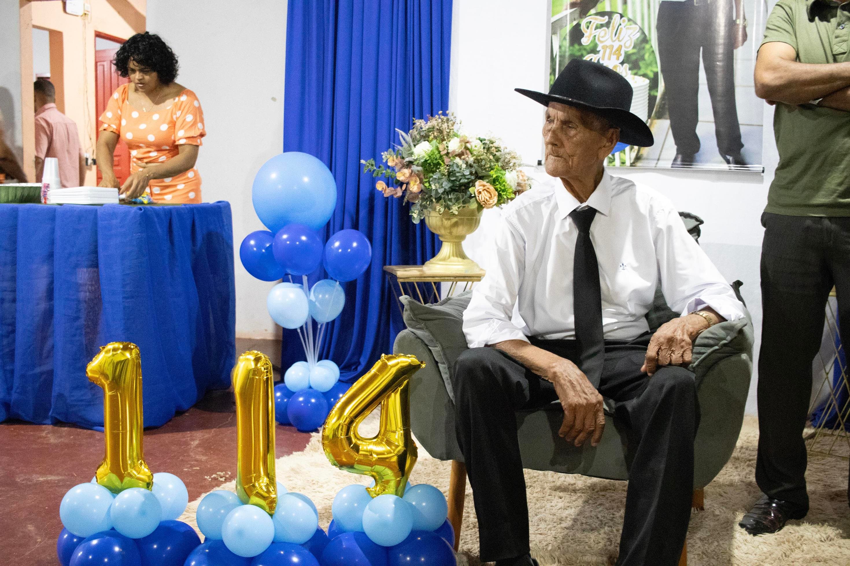 Raimundo Lopes de Sousa, o conhecido “Raimundo Paizinha”, completou 114 anos nesta última sexta-feira, 05 de dezembro, celebrando ao lado de filhos, netos, bisnetos, tataranetos em Guaraí. A festa seguiu seu estilo favorito: muito forró e alegria até altas horas. Mesmo com dificuldade auditiva, mantém memória afiada e conversa sobre qualquer assunto. Sua vitalidade é surpreendente.