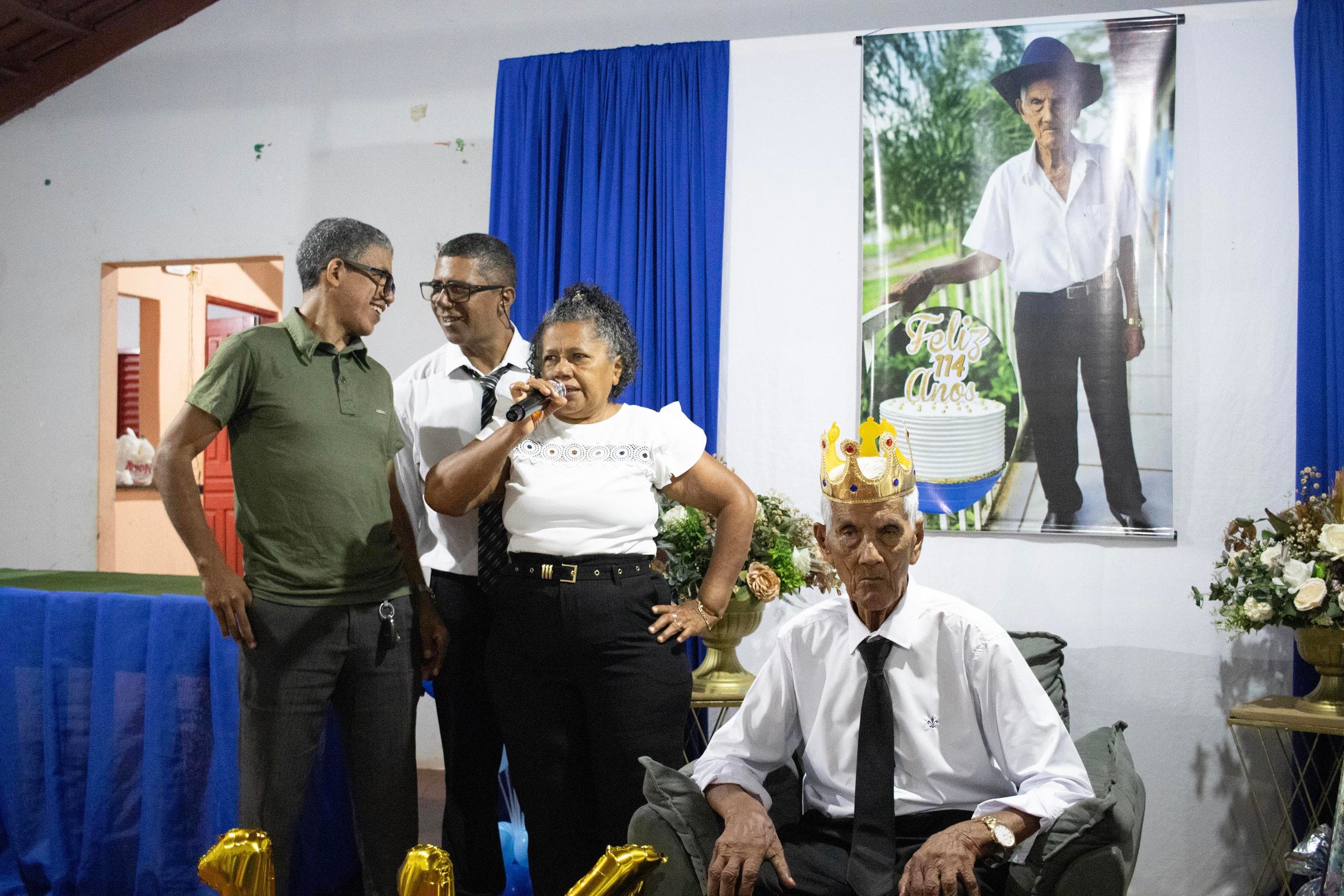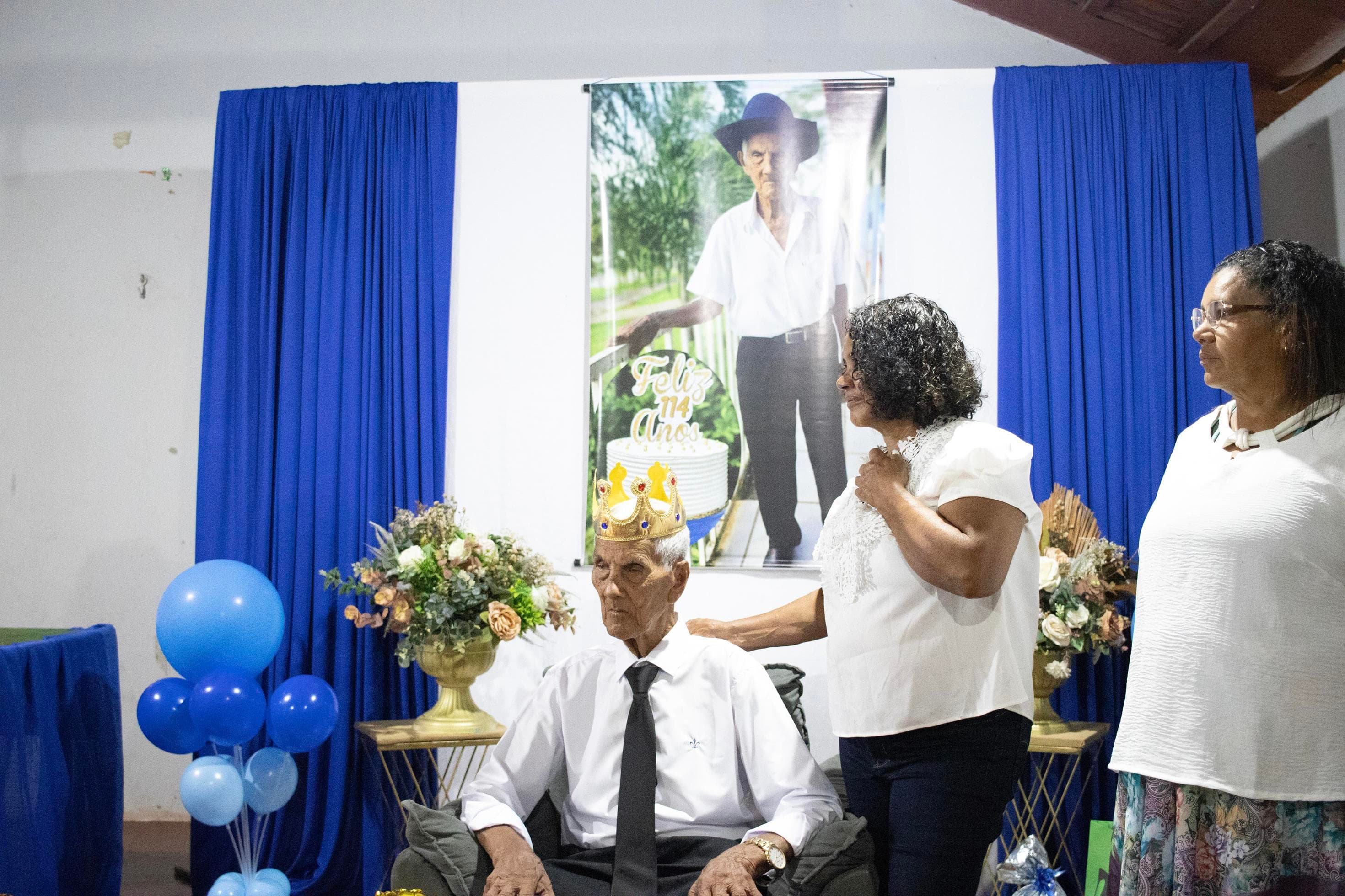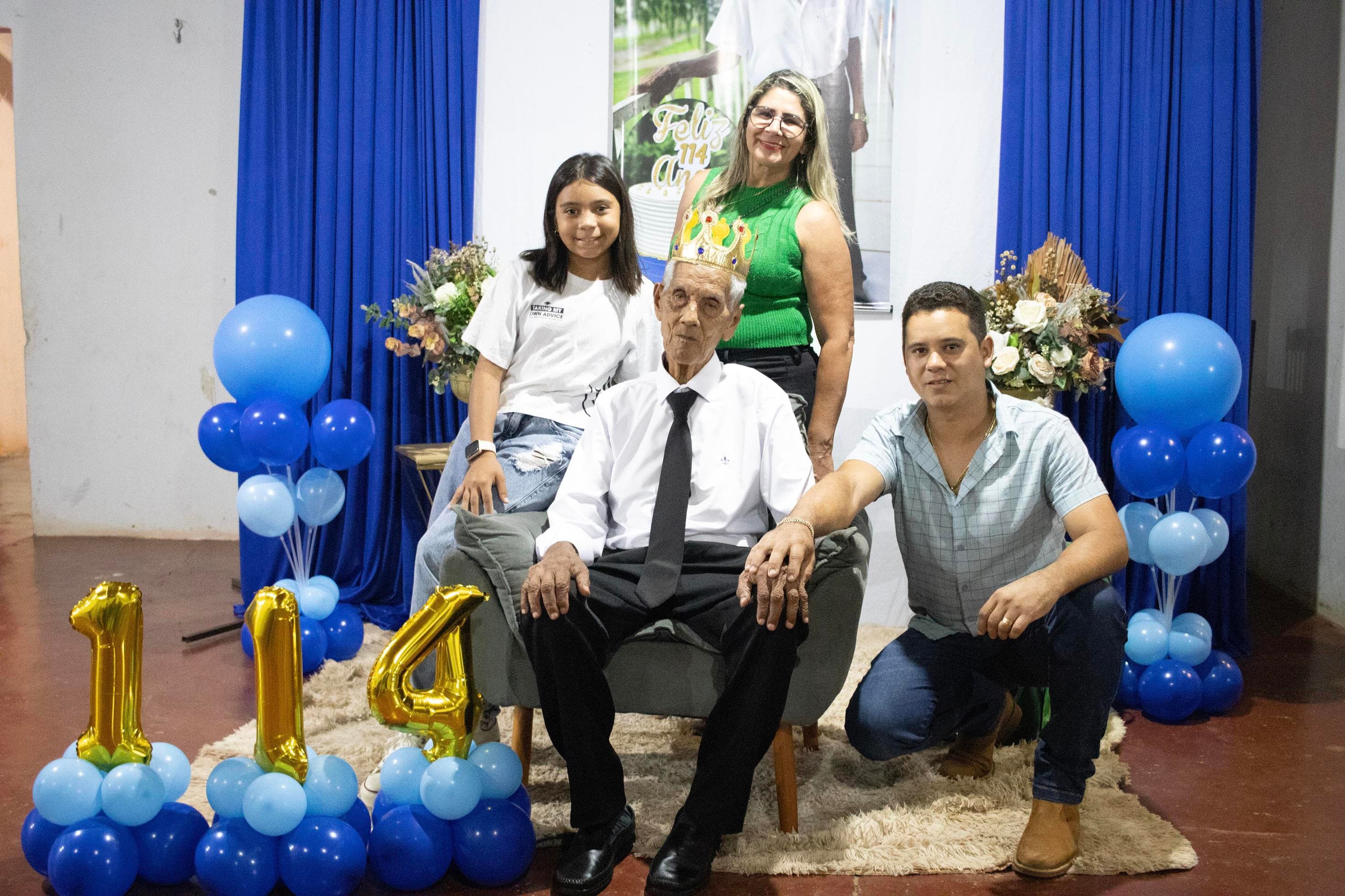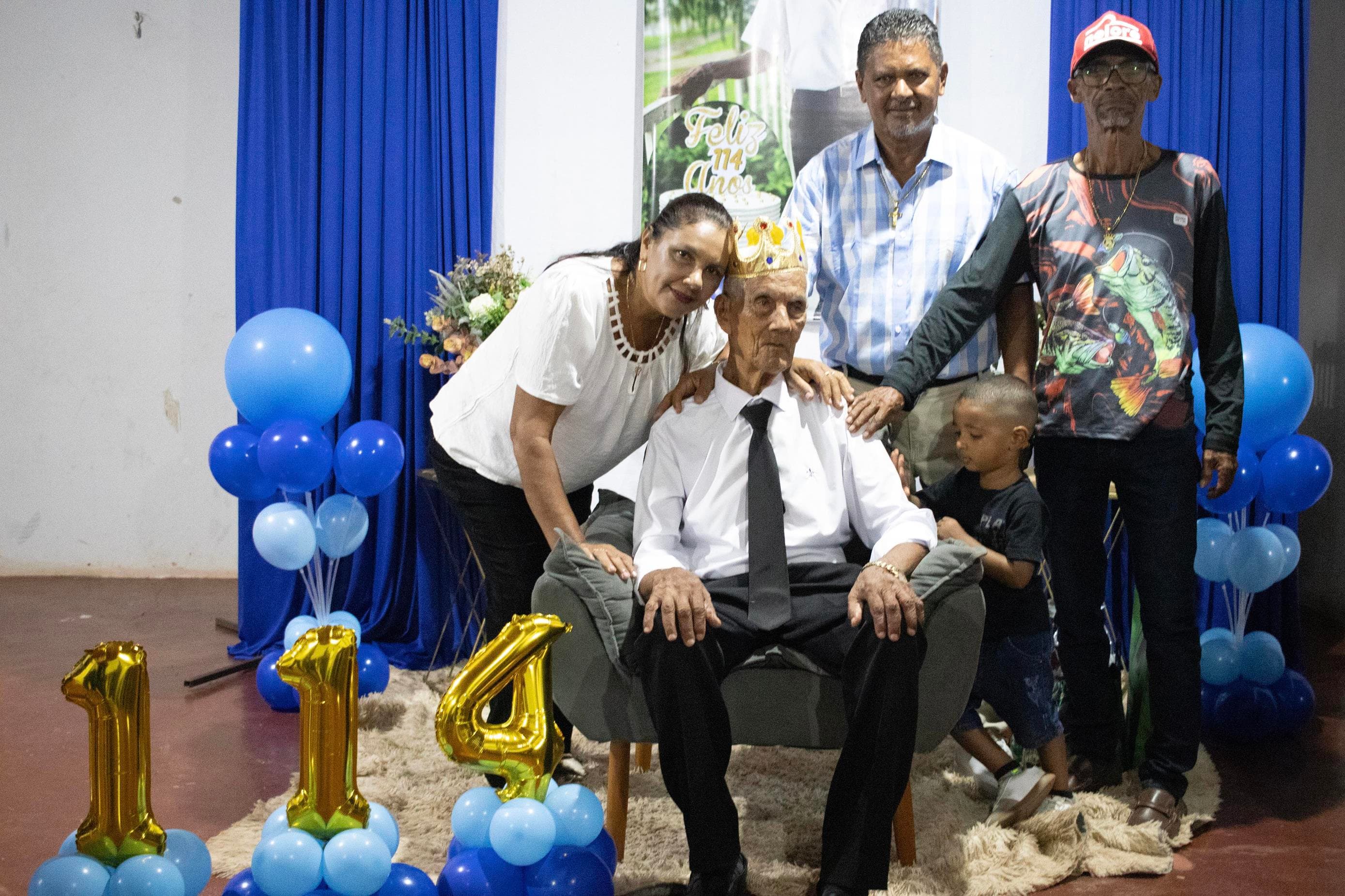 Raimundo Lopes de Sousa, o conhecido “Raimundo Paizinha”, completou 114 anos nesta última sexta-feira, 05 de dezembro, celebrando ao lado de filhos, netos, bisnetos, tataranetos em Guaraí. A festa seguiu seu estilo favorito: muito forró e alegria até altas horas. Mesmo com dificuldade auditiva, mantém memória afiada e conversa sobre qualquer assunto. Sua vitalidade é surpreendente.