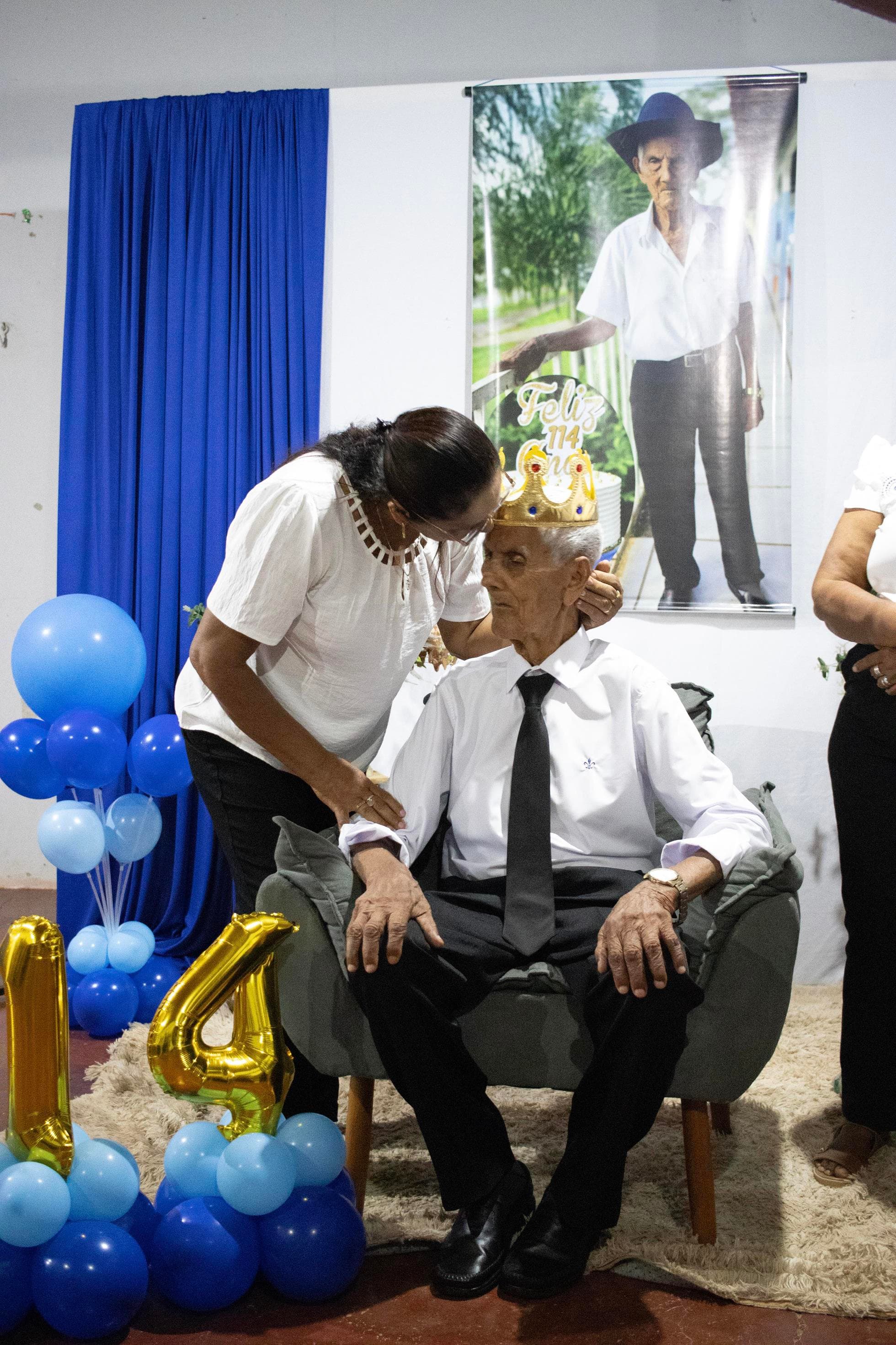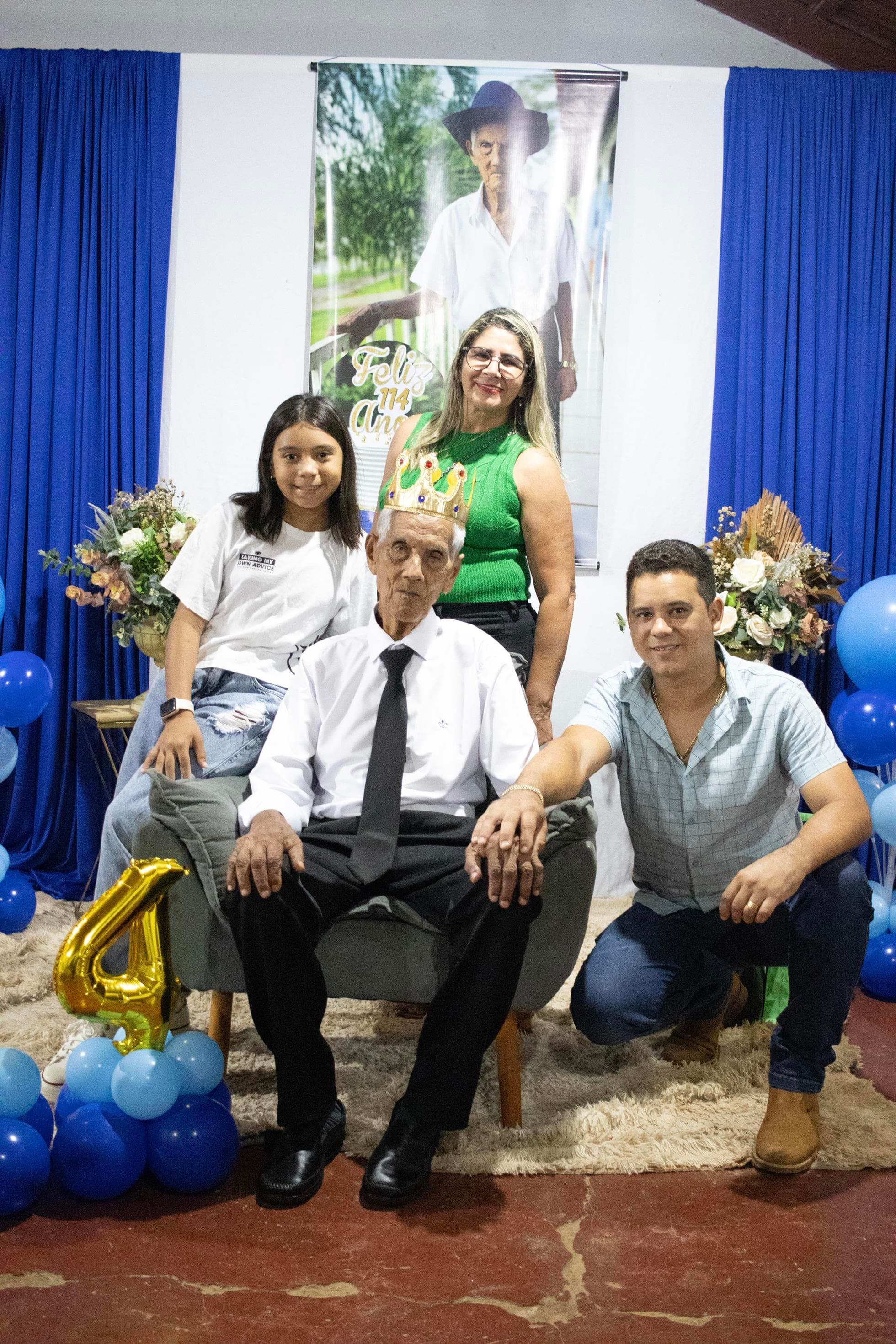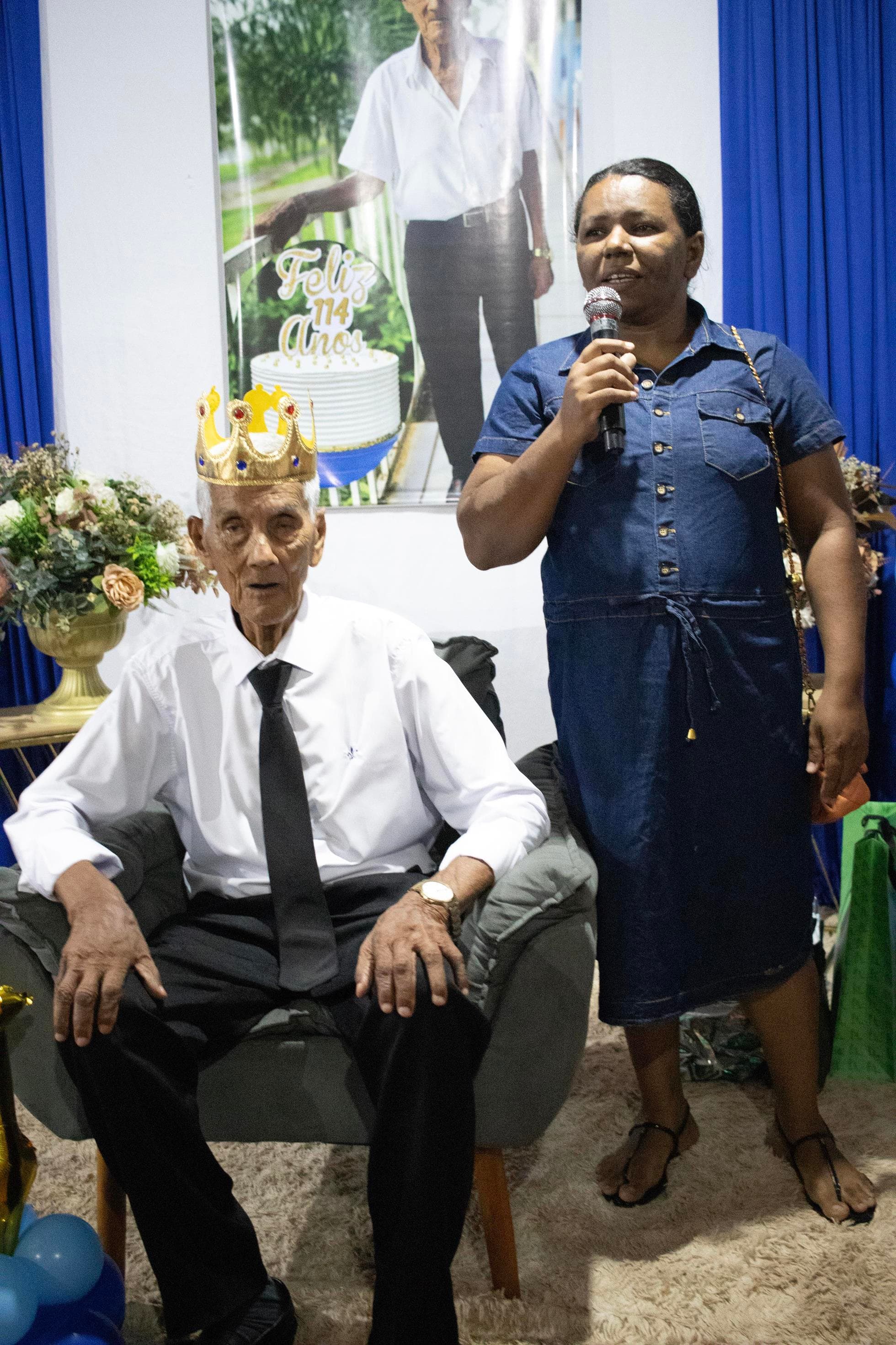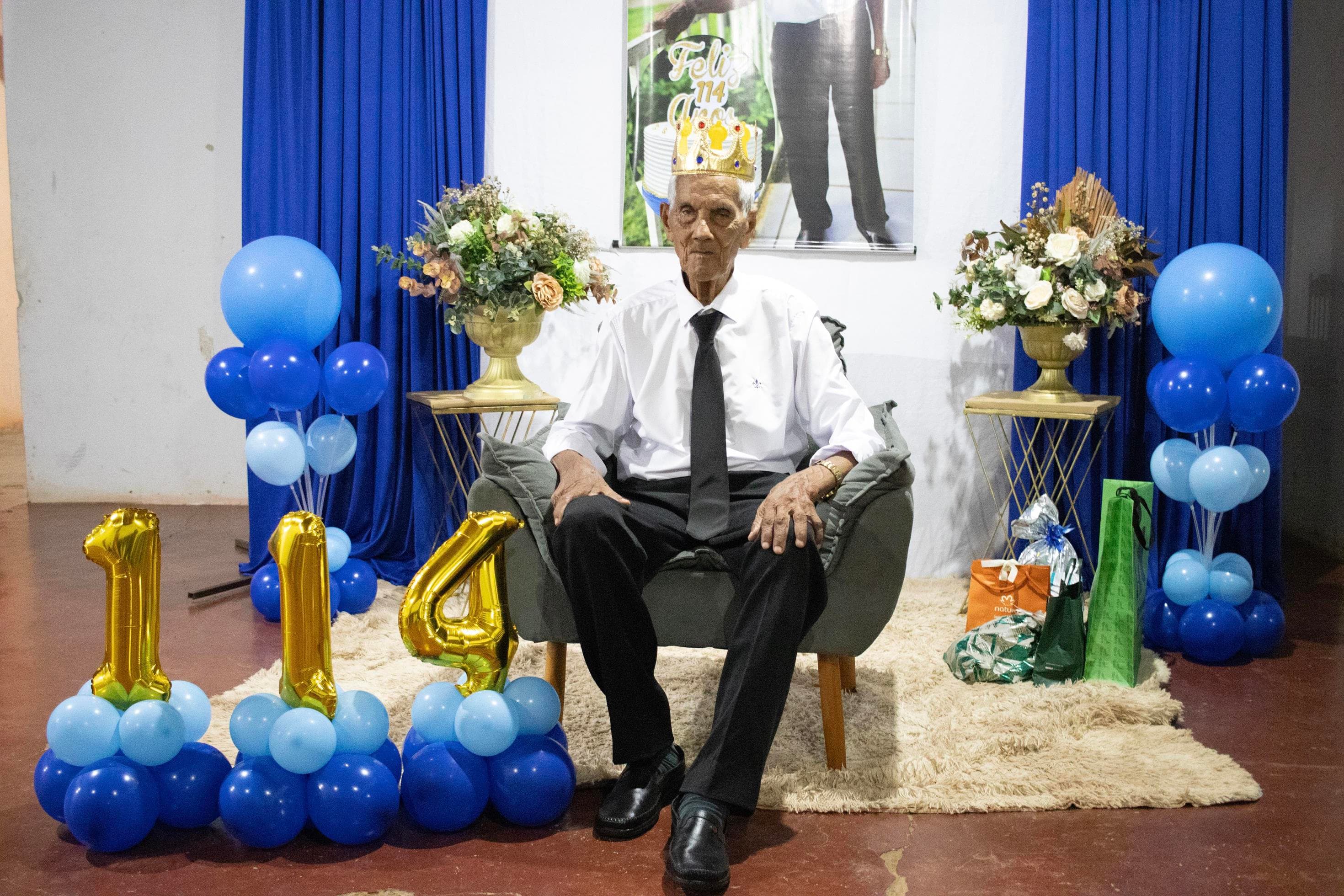 Raimundo Lopes de Sousa, o conhecido “Raimundo Paizinha”, completou 114 anos nesta última sexta-feira, 05 de dezembro, celebrando ao lado de filhos, netos, bisnetos, tataranetos em Guaraí. A festa seguiu seu estilo favorito: muito forró e alegria até altas horas. Mesmo com dificuldade auditiva, mantém memória afiada e conversa sobre qualquer assunto. Sua vitalidade é surpreendente.