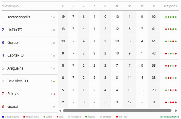 O União Esporte Clube, Tocantinópolis Esporte Clube e Gurupi Esporte Clube venceram na 7ª rodada e se garantiram nas semifinais, sendo que a equipe do Bico do Papagaio venceu os 7 jogos. O Capital Futebol Clube, mesmo perdendo, também conquistou a sua vaga. Os duelos semifinais começam já no próximo fim de semana. Já o Araguaína Futebol & Regatas, atual campeão, foi eliminado.