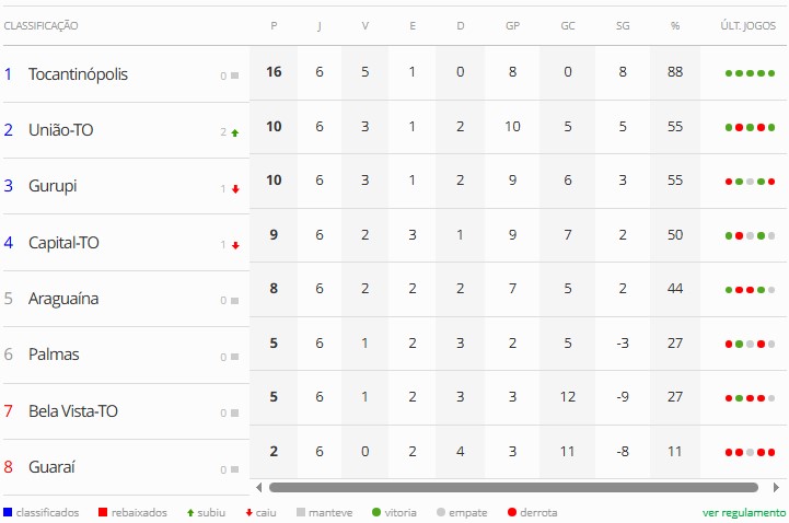 Em relação a classificação para a fase semifinal o Tocantinópolis, vice-campeão no ano passado, matematicamente já está garantido e em 1º lugar com 16 pontos. Araguaína, atual campeão com 8 pontos, Capital com 9, Gurupi e União com 10 pontos, seguem na briga pelas três vagas restantes. A última rodada promete ser muito quente, inclusive com confrontos diretos pela classificação.