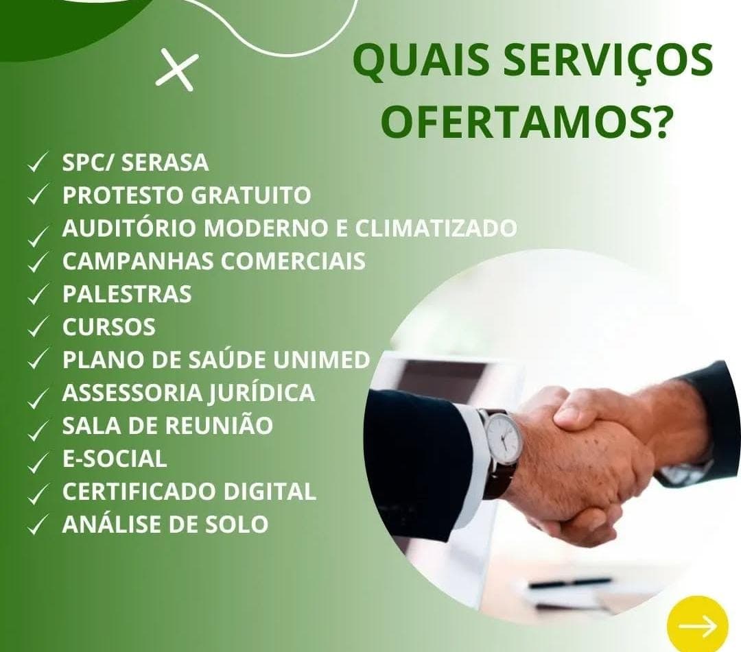 O associado conta com uma série de benefícios exclusivos. Estão disponíveis condições especiais para consultas ao SPC/Serasa e protesto gratuito, acesso a valores diferenciados para aluguel do auditório e da sala de reuniões, além de uma programação de cursos, palestras e campanhas comerciais. A entidade oferece ainda plano de saúde, assessoria jurídica, e-Social e análise de solos.