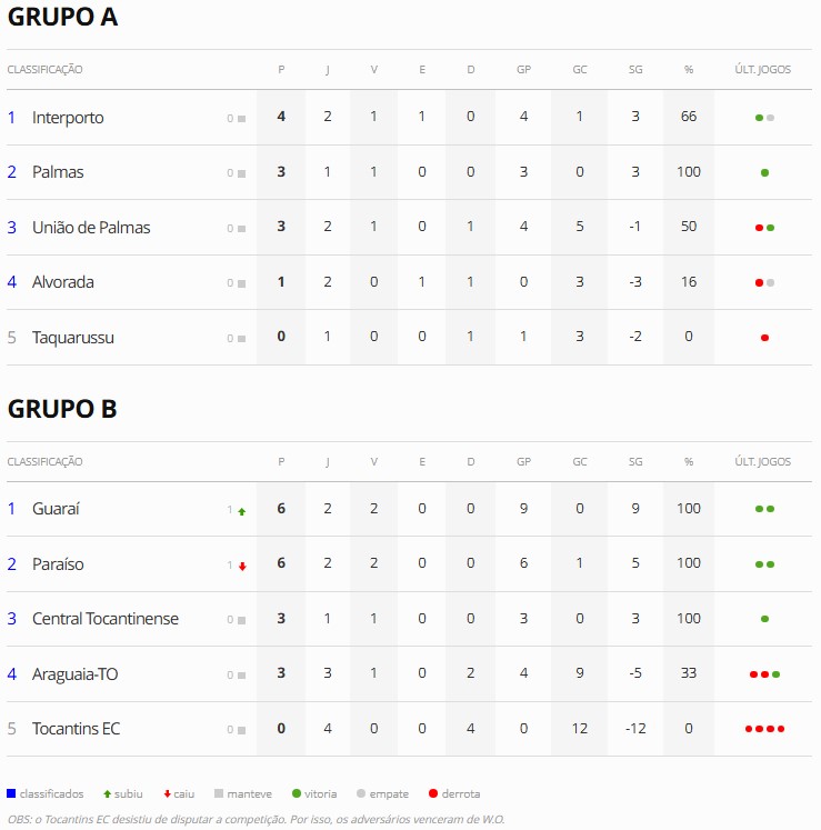 Além de Guaraí e Paraíso, Central Tocantinense e Araguaia também estão no Grupo B, sendo que o Araguaia tem duas derrotas e realiza apenas mais um jogo. Importante frisar que o Tocantins, que também está neste grupo, desistiu da competição e por isso os confrontos não vão acontecer. Todos os adversários, por conta disso, já somam os três pontos da vitória por WO e saldo de três gols.