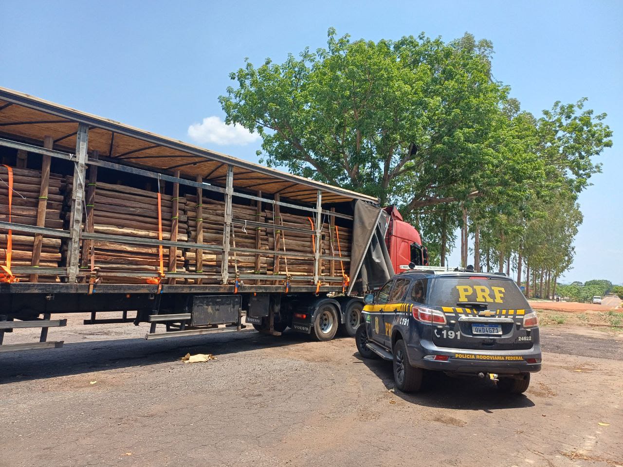 A Polícia Rodoviária Federal (PRF) apreendeu na manhã desta sexta-feira, 17 de outubro, cerca de 56,9 metros cúbicos (m³) de madeira nativa transportada irregularmente em Guaraí. A ação ocorreu na rodovia BR-153, quando os agentes abordaram um caminhão com dois semirreboques. O motorista, de 45 anos, apresentou documentação ambiental com divergências sobre a carga.