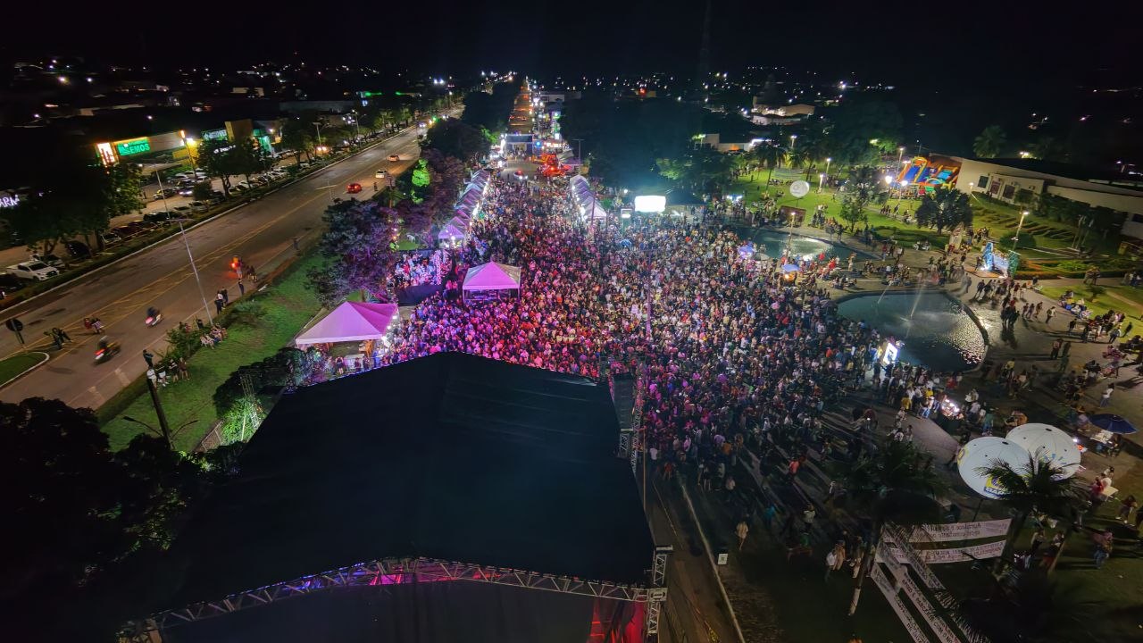 Embora não exista contagem oficial divulgada por órgãos públicos ou forças de segurança, a dimensão visual da multidão reforça a avaliação de público recorde. A concentração diante do palco, somada aos bolsões laterais de circulação e permanência, indica ocupação intensa da praça e do entorno. Na prática, a noite que marcava os 56 anos de emancipação política do município reuniu uma massa popular rara para os padrões locais, com forte presença de visitantes.