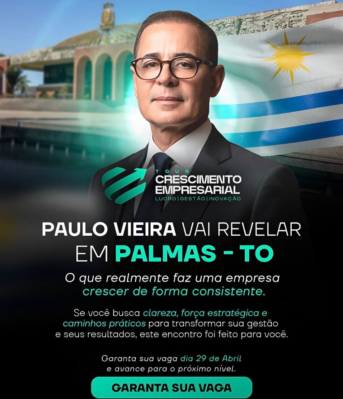 Moradores de Guaraí e região têm a chance de transformar seus resultados por meio da “Tour Crescimento Empresarial” com o Paulo Vieira. Promovida pela Febracis, reconhecida como a maior escola de negócios da América Latina, a iniciativa propõe uma imersão prática em gestão, liderança, lucro e inteligência artificial aplicada aos negócios e acontece na capital Palmas no dia 29 de abril.