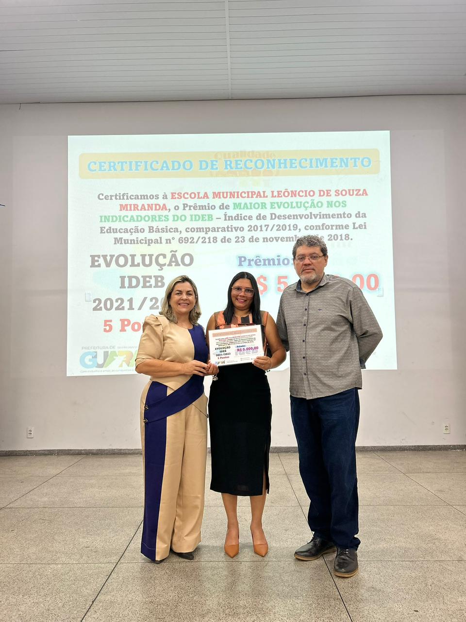 Maior evolução, premiada com R$ 5 mil – Escola Municipal Leôncio de Sousa Miranda, da nota 0 para 5.