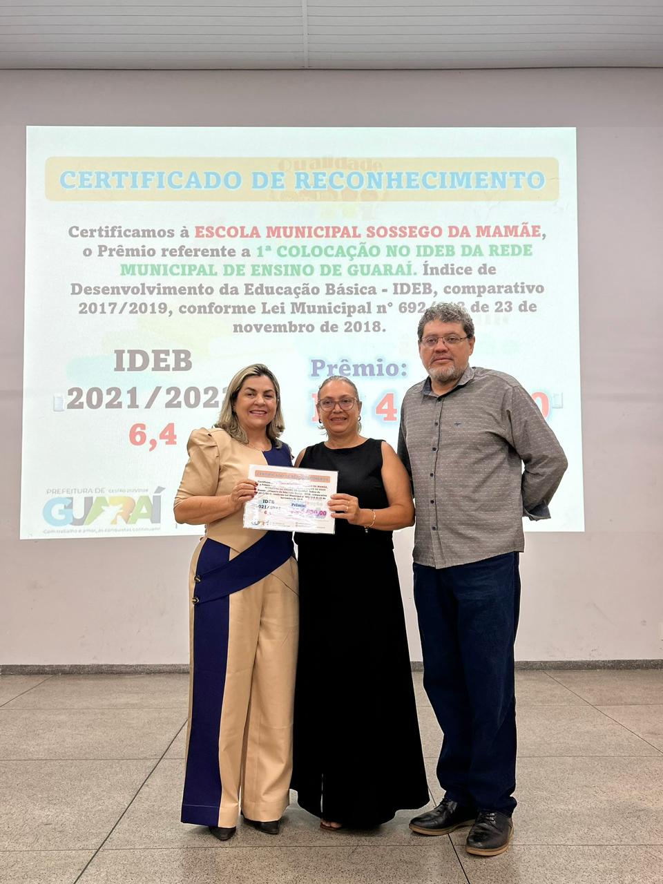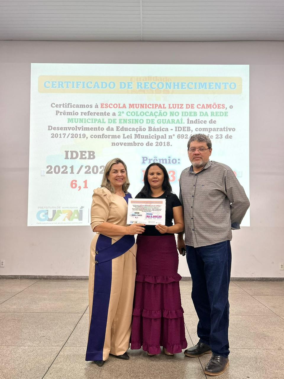 Durante o encerramento do 2º Seminário Municipal de Boas Práticas Educacionais, nesta última sexta-feira, 07 de novembro, a Prefeitura de Guaraí realizou a entrega do prêmio “Valorização IDEB”, instituído pela Lei Municipal nº 692/2018. A iniciativa tem reconhece escolas da rede pública municipal com melhor desempenho no Índice de Desenvolvimento da Educação Básica (IDEB).