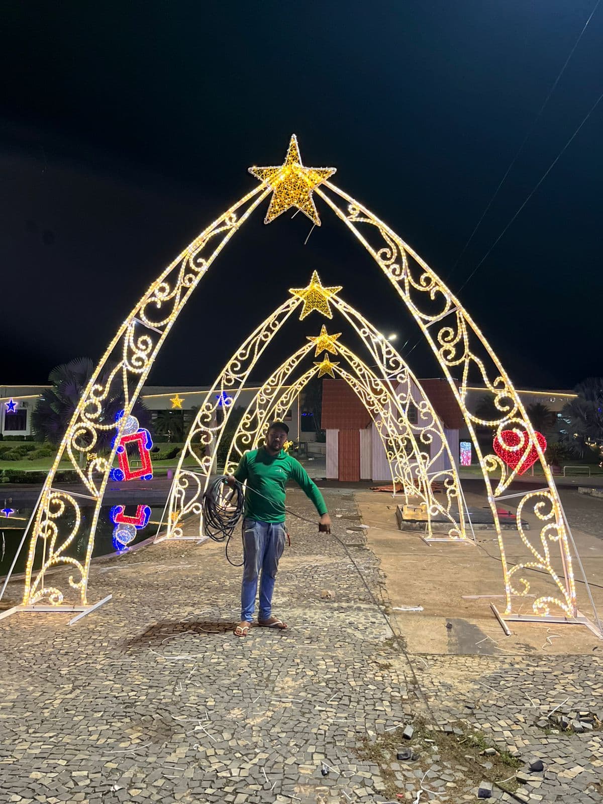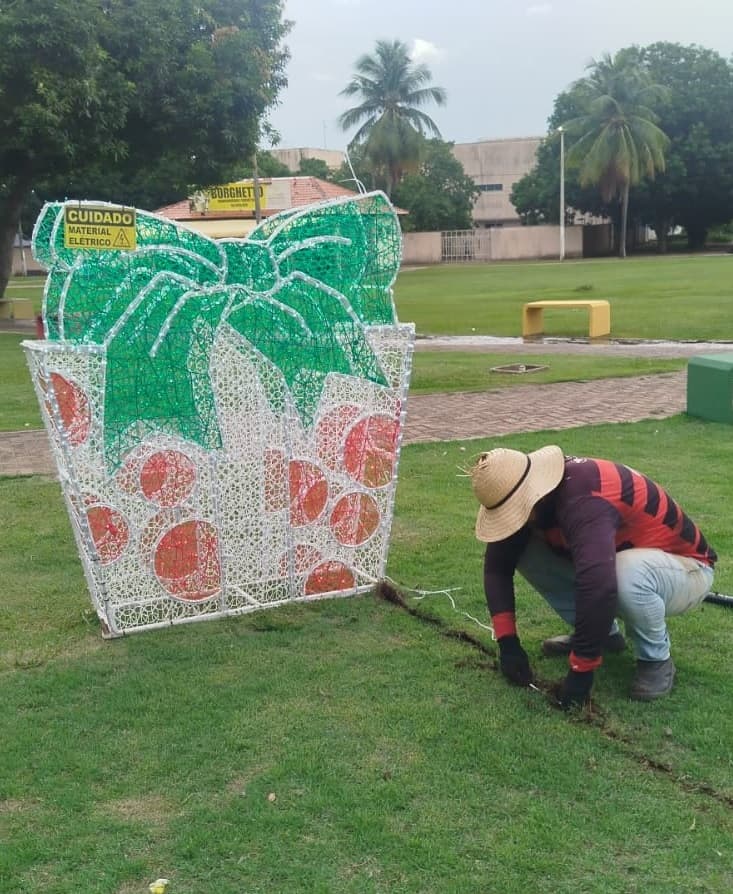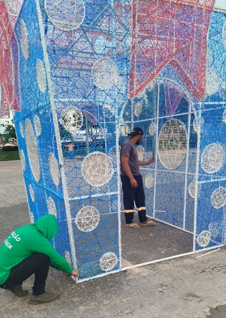 A empresa selecionada para realizar a montagem, manutenção e desmontagem das estruturas é a Viaseg Produções e Montagem Ltda, com sede em Palmas-TO. O contrato inclui a locação completa de itens como estruturas luminosas, painéis temáticos, peças tridimensionais, caixas de presentes gigantes, pirâmides de bolas, máquina de neve artificial e o novo mega túnel iluminado.