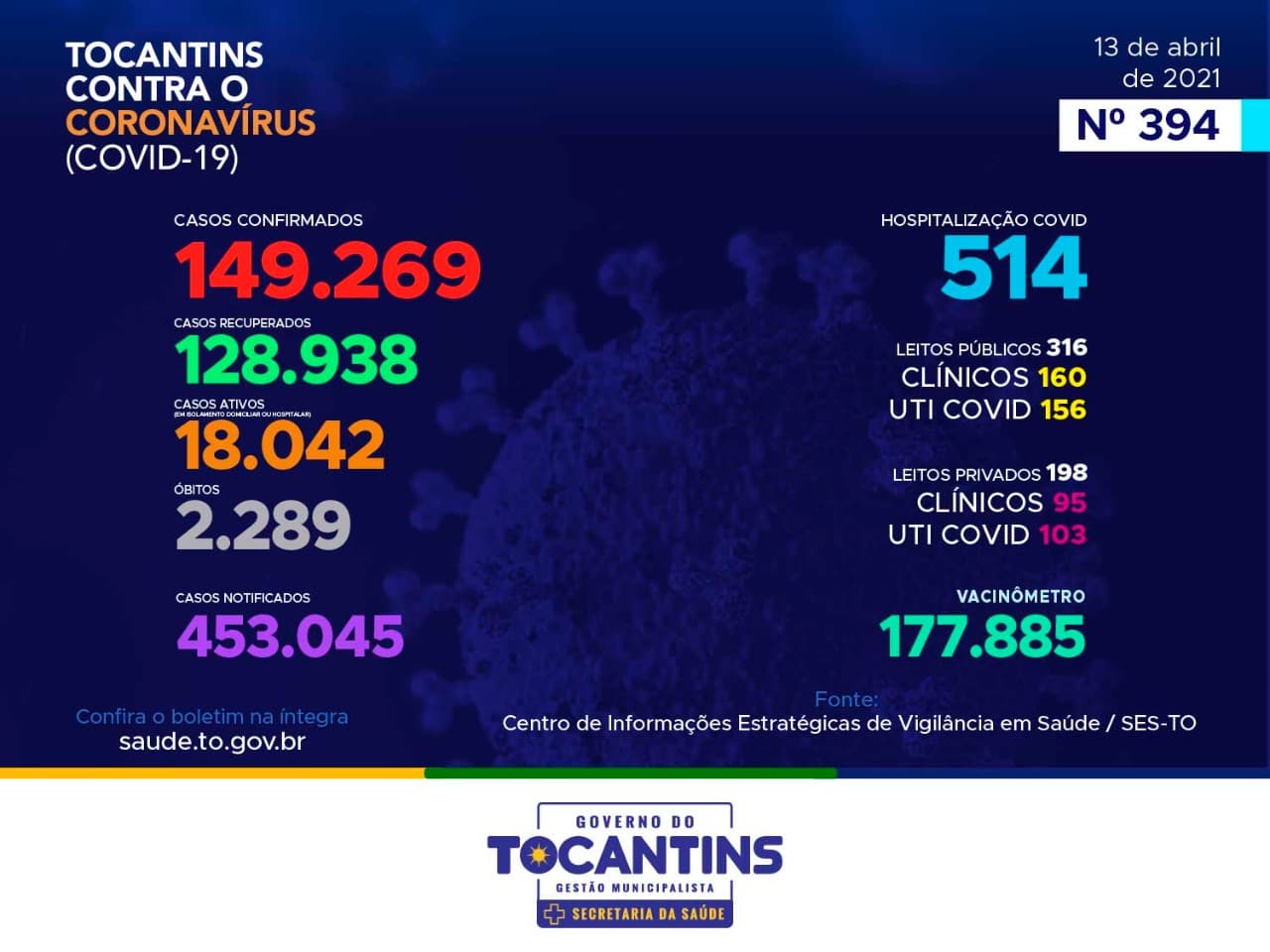 Covid-19 no Tocantins (13/04)