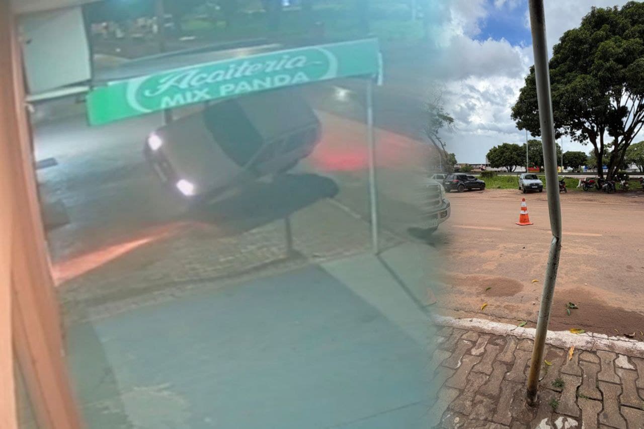 Após manobra ‘bizarra’, FIAT Uno tomba e invade calçada de açaiteria em pleno Centro de Guaraí