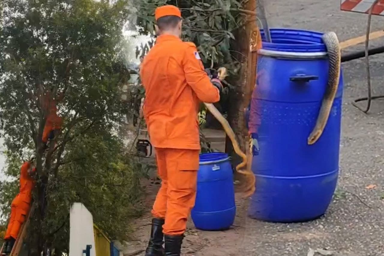 Cobra com mais de 1,5 metros é retirada do topo de árvore em frente à escola infantil de Guaraí